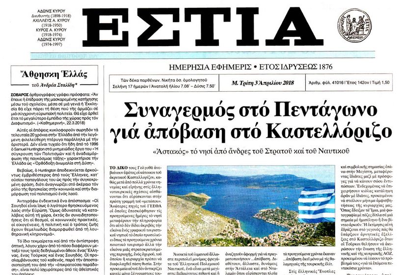 Δημοσιεύθηκε στην Εστία,  Μεγάλη Τρίτη 3 Απριλίου 2018.