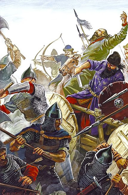 Οι Βαράγγοι έγραψαν σελίδες δόξας και βίας στα ρωμαϊκά χρονικά. Η παρουσία των μεγαλόσωμων πολεμιστών στο πεδίο της μάχης, με τα τεράστια πολεμικά τσεκούρια και τον δράκο ή το κοράκι του Οντίν στις ασπίδες προκαλούσε τρόμο στον αντίπαλο.