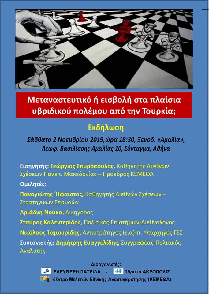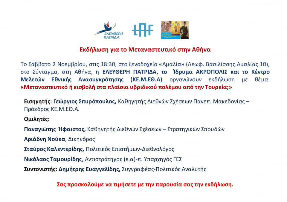 (Βίντεο) Ομιλία του Νίκου Ταμουρίδη στην εκδήλωση «Μεταναστευτικό ή εισβολή στα πλαίσα υβριδικού πολέμου από την Τουρκία;»