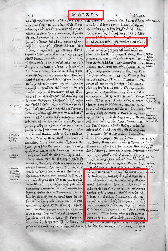 Και κάτι τελευταίο: πού είναι τον 17ο αιώνα αυτός ο «περιβόητος» λαός της νότιας περιοχής της Χερσονήσου του Αίμου που σφετερίζεται την ελληνική ιστορία οικειοποιούμενος ελληνικά ιστορικά ονόματα σαν δήθεν χαρακτηριστικά της ταυτότητάς του; Υπάρχει κάπου καταγεγραμμένος σε αυτές τις 734 σελίδες; Όχι φυσικά. Όλοι οι άλλοι λαοί αναφέρονται στην έκδοση, και μπορείτε να τη δείτε λεπτομερώς (Σέρβοι, Βούλγαροι, Βόσνιοι, Κροάτες, Έλληνες κ.λπ.) εκτός από κάποιους «σύγχρονους» που ισχυρίζονται ότι έχουν και ιστορικές ρίζες. Και όχι μόνο δεν καταγράφεται πουθενά αυτός ο λαός, αλλά και η περιοχή στην οποία τοποθετείται ιστορικά η «σύγχρονη» πρωτεύουσά τους είναι έξω από τα ιστορικά γεωγραφικά όρια ακόμη και αυτής της τεράστιας Ρωμαϊκής Μακεδονίας (εἰς τὴν ὁποίαν [οι Ρωμαίοι] περιελάμβανον τήν τε Ἤπειρον καὶ Θεσσαλίαν).