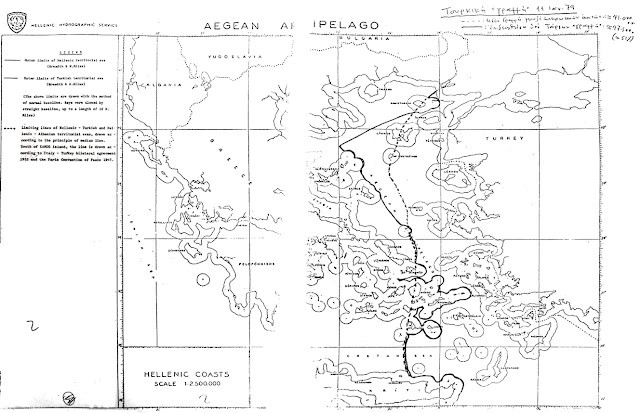 -Δεύτερον, ο χάρτης που κατέθεσε η Τουρκία διχοτομεί το Αιγαίο στον 25ο Μεσημβρινό (περίπου), με ότι αυτό συνεπάγεται για το FIR και τα δικαιώματα έρευνας και διάσωσης εκτός της υφαλοκρηπίδας/ΑΟΖ.