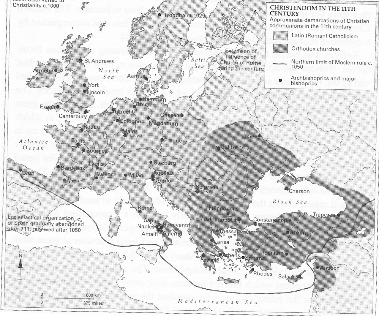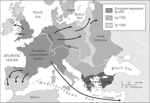 Αντίθετα με ότι θα περίμενε κανείς, η ανασφάλεια και η αστάθεια που δοκίμασε η ορθόδοξη ανατολική χριστιανοσύνη κατά τη μακρόχρονη αυτή περίοδο του Μεσαίωνα βρίσκεται σε πλήρη αντίθεση με την εσωτερική σταθερότητα που βίωσε η χριστιανική Δύση την ίδια εποχή. Φυσικά, σε πολλά μέρη της Ευρώπης πολύ πριν από τη δεκαετία του 1050 η παλινόρθωση της τάξης είχε ήδη δρομολογηθεί, όπως είπαμε νωρίτερα. Η μακρά περίοδος σταθερότητας που ακολούθησε οφείλεται, χωρίς αμφιβολία, στην απουσία εξωτερικού κινδύνου.