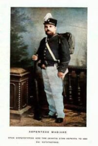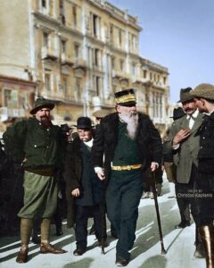 Σπάνια φωτογραφία τραβηγμένη στην Πανεπιστημίου στις 6 Δεκεμβρίου του 1912. Στην ιστορική λήψη εικονίζεται ο Ιταλός επαναστάτης Ριτσιότι Γκαριμπάλντι, που έχει φτάσει στην Αθήνα για να στηρίξει τους Έλληνες στην μεγάλη στρατιωτική εκστρατεία για την απελευθέρωση της Ηπείρου, της Μακεδονίας και των νησιών. Ο Γκαριμπάλντι είχε πράξει ανάλογα και το 1897 στον ελληνοτουρκικό πόλεμο όταν πολέμησε με 300 Ιταλούς στο πλευρό της Ελλάδας, στον Δομοκό. Το 1912 αποφάσισε να πολεμήσει στους Βαλκανικούς πολέμους και σχημάτισε σώμα από 1.200 Ιταλούς και Βρετανούς εθελοντές, οι οποίοι με επικεφαλής τον γιο του, Π. Γκαριμπάλντι βοήθησαν στην απελευθέρωση των Ιωαννίνων από τους Τούρκους. Στις 28 Νοεμβρίου του 1912 κατά τον Πρώτο Βαλκανικό πόλεμο είχε γίνει επικεφαλής του λόχου των εθελοντών Γαριβαλδινών ο Λορέντζος Μαβίλης: