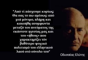 Ο Οδυσσέας Ελύτης ήταν ο φάρος που φώτισε τη χώρα μας στο εξωτερικό, που έδειξε στον κόσμο ότι η ελληνική γλώσσα είναι η πιο παλιά, η πιο πλούσια, η πιο ζωντανή γλώσσα του κόσμου. Με το «Της δικαιοσύνης ήλιε νοητέ», με το «Άξιον Εστίν», με κάθε στίχο του, μας δίδαξε ότι η ποιητική πράξη είναι η ίδια η ζωή ότι μόνο αν κάνεις σωστά τη δουλειά σου, η ψυχή δεν πάει χαμένη. Σήμερα, οι λέξεις του ηχούν σαν καμπάνες στον χρόνο σαν κύματα που αγκαλιάζουν τα νησιά, σαν άνεμος που σηκώνει τη σκόνη της ιστορίας και φέρνει μαζί τη δόξα του ελληνικού πνεύματος. Μέσα στη θλίψη της απέραντης μετριότητας που μας περιβάλλει, μας θυμίζει ότι κάπου, σε κάποιο καμαράκι, κάποιοι συνεχίζουν να παλεύουν να εξουδετερώσουν τη φθορά ότι η ελληνική ψυχή ζει, και η ποίηση της είναι αιώνια.