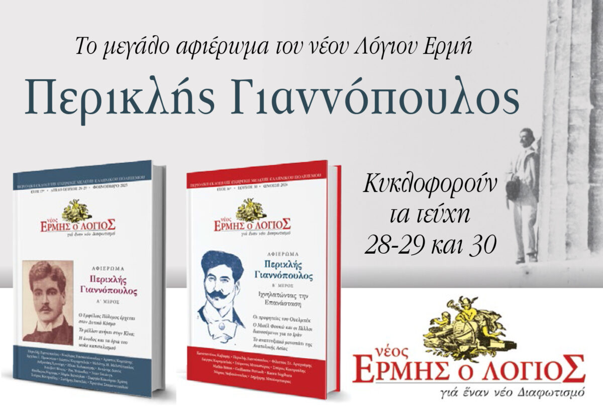 Η συζήτηση θα γίνει με αφορμή τα δύο τεύχη του νέου Ερμή του Λόγιου με αφιέρωμα στον Περικλή Γιαννόπουλο.